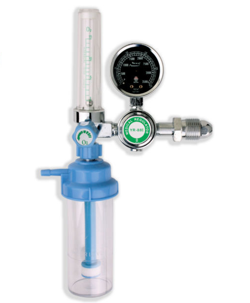 一个氧气压力调节器是一个控件阀门将流体的输入压力降低到其输出处的期望值。调节器用于气体和液体,可以是一个整体装置,输出压力设置、限流器和传感器都在一个阀体中,或者由单独的压力传感器、控制器和流量阀组成。